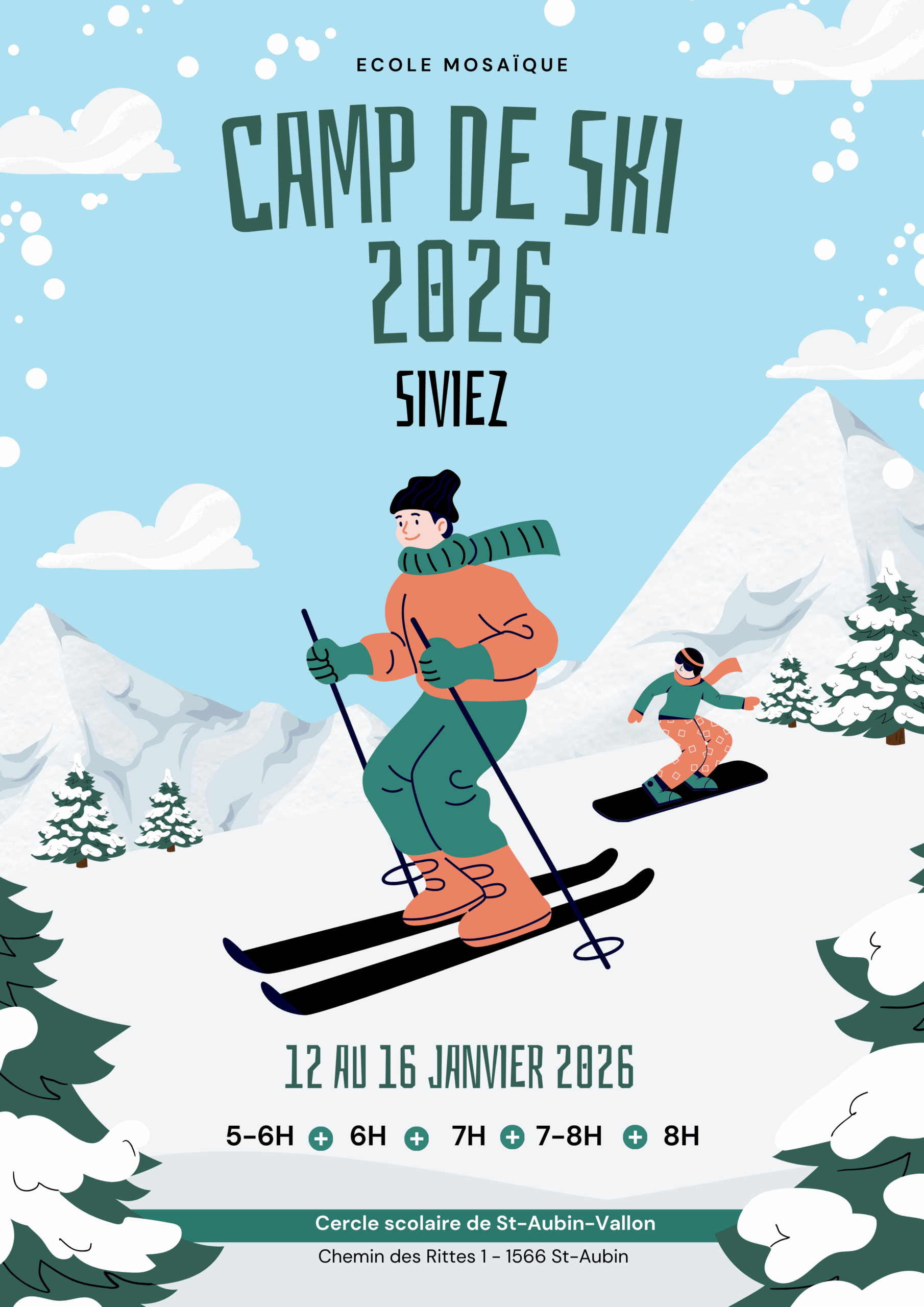 Camp de ski 5-8H : 12 au 16 janvier 2026