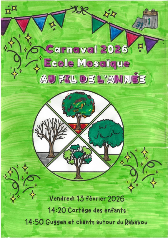Le Carnaval de l’École Mosaïque aura lieu le vendredi 13 février 2026.